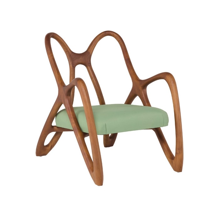 Essence de l'artisanat, le fauteuil Nanto tire son inspiration des formes minces des ailes d'un papillon et de ses taches colorées, souvent au centre des ailes. Le processus de production, en grande partie manuel, met en évidence le bois du teck, une matière première qui a toujours été plus précieuse et raffinée pour les meubles d'extérieur, et améliore la beauté avec un traitement habile. La conception organique de cette chaise fait vibrer les veines du bois, la nature et la main de l'homme travaillent dans la symbiose améliorant le caractère doux et chaud en même temps. Un amour profond pour les finitions et la fabrication que seuls les maîtres artisans savent faire.