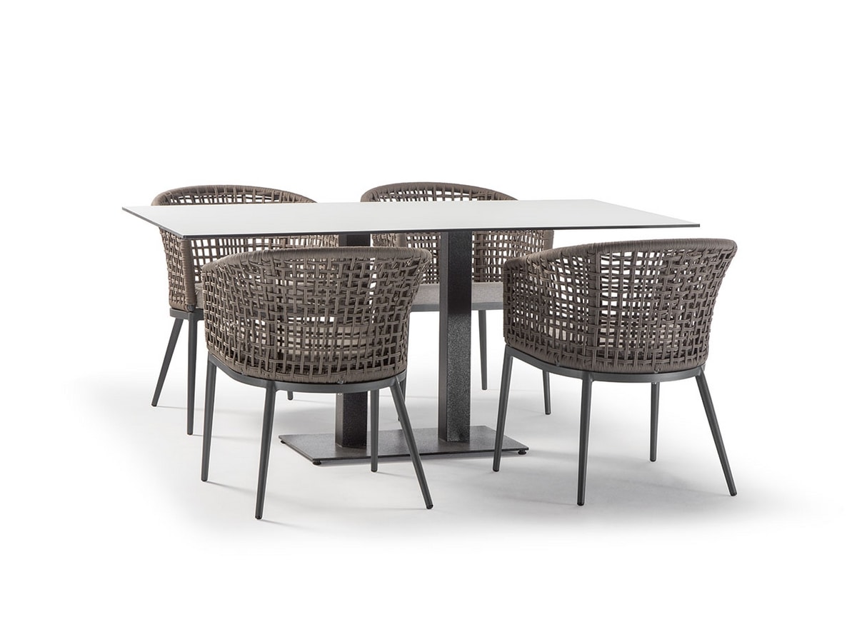 Demander prix Produits similairesChaise avec structure en aluminium anthracite et revêtement en corde synthétique Wintech marron. Coussins déhoussables en tissu Olefin.
