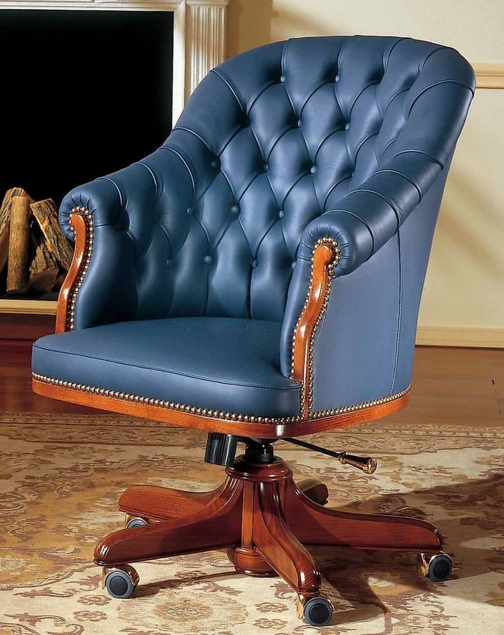 Demander prix Produits similairesCette chaise de bureau est idéale pour ceux qui recherchent un maximum de confort; la sellerie capitonnée standard rehausse particulièrement le luxe de ce modèle où l'on utilise des cuirs naturels de première qualité, teint à l'aniline, pleine fleur avec des pigments à effet bicolore, aspect semi-brillant.