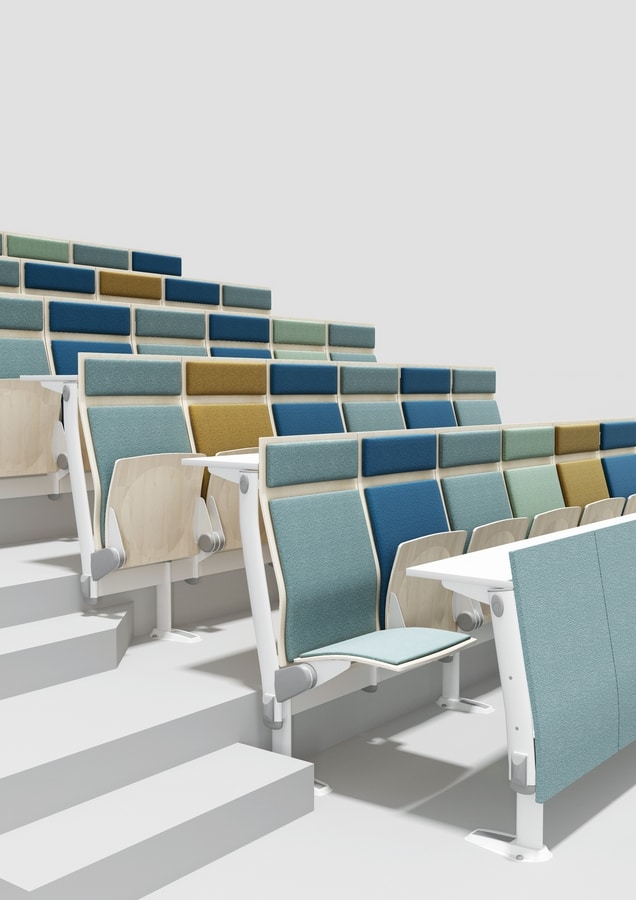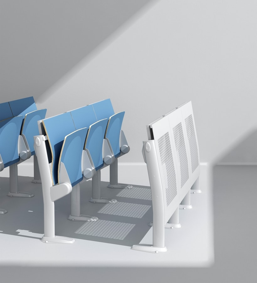 Evolution est conçu pour s'adapter parfaitement à une installation sur des sols en escalier. La hauteur de la nouvelle structure verticale est configurée en fonction des marches et le dossier surélevé et le soutien lombaire permettent une posture optimale.