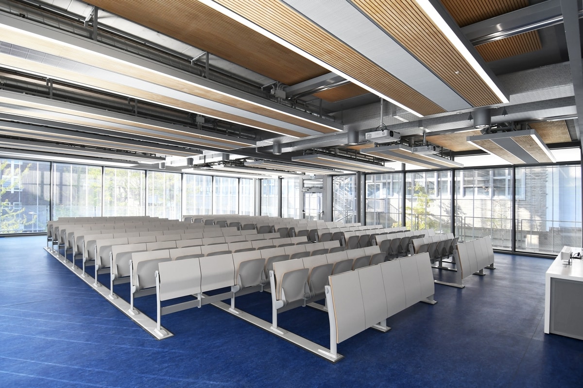 Extrêmement modulaire et donc idéal pour une utilisation dans des espaces restreints. Le système de poteau vertical est conçu pour économiser de l'espace, en soutenant le siège et la table d'écriture avec une seule structure.