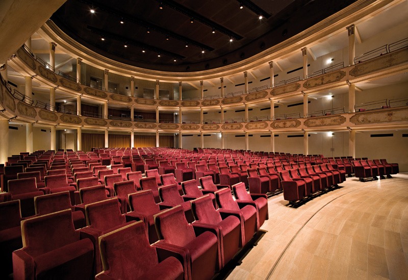 Après 30 ans, le théâtre a ouvert, tout le mobilier a été fourni par Caloi en collaboration avec les partenaires spécialisés. Pour ce projet important a Caloi Caloi a fourni son propre savoir-faire et l'expérience et le siège a été conçu par le célèbre architecte Aldo Cibic.