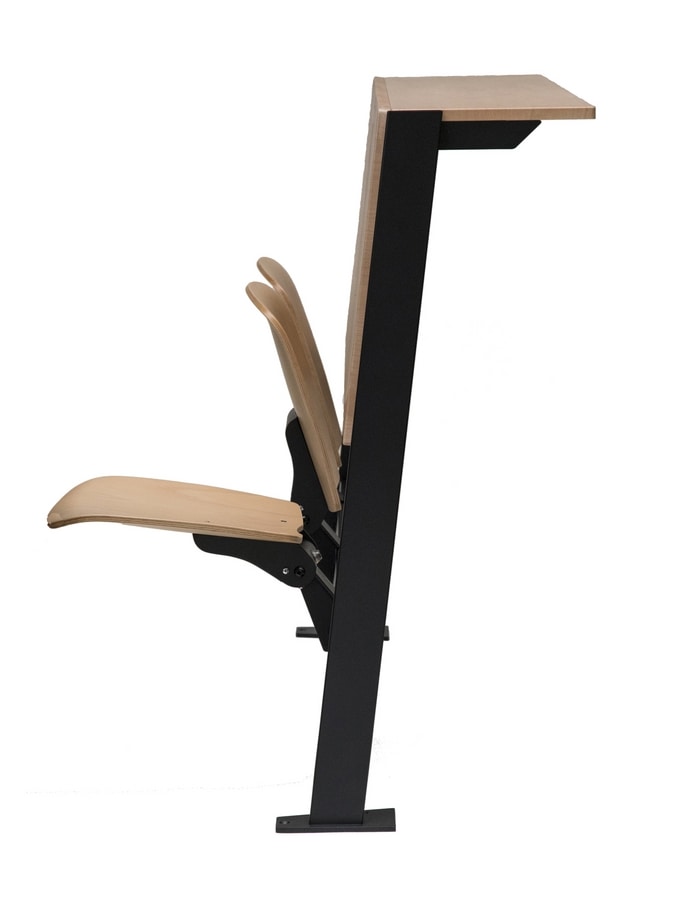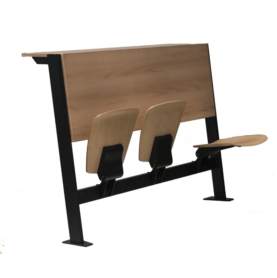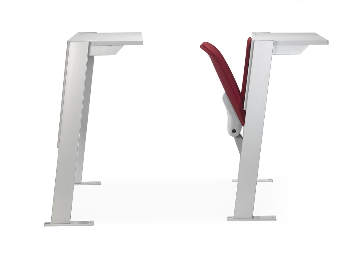Idéal pour : auditorium, salles d'enseignement, salles de classe, salles de conférence. En option : assise ou assise et dossier capitonnés et rembourrés en façade, porte-livres, kit de fixation au sol, adaptation sur mesure selon le projet.
