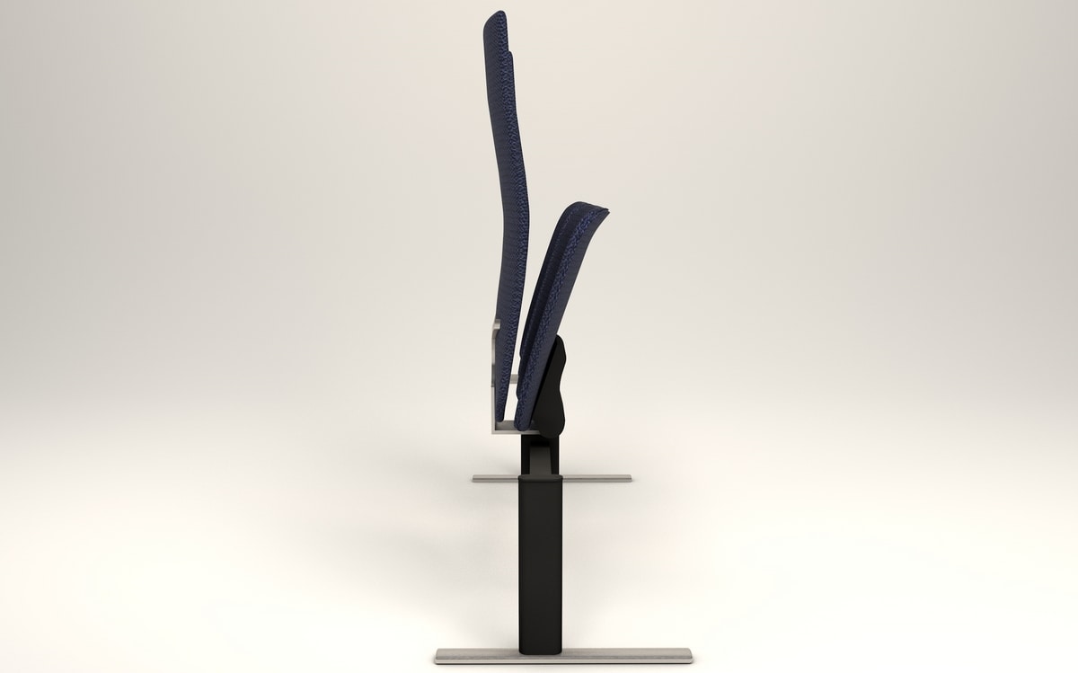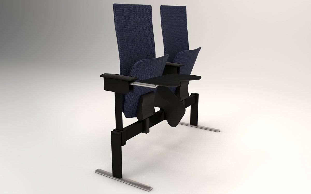 En option : Façade rembourrée pour siège, assise et dossier entièrement rembourrés (avant + arrière), assise + dossier chêne blanc ou bouleau ou wengé, kit de fixation au sol, prise de courant le long de la colonne, accoudoirs avec tablette écritoire anti-panique, tablette gauche, grand tablette de taille pour ordinateur portable, tablette robuste, kit de fixation au sol.