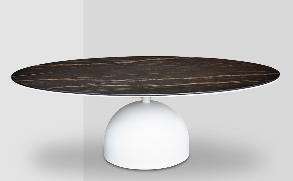 Base en métal peint, plateau en verre.