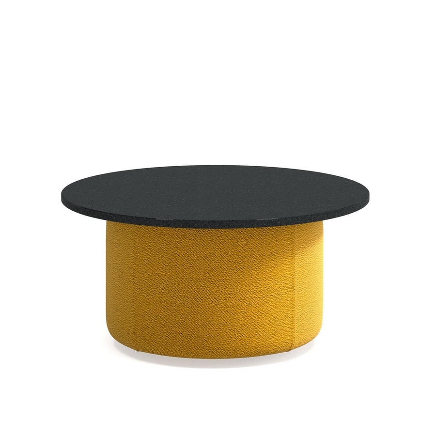 Table basse D.80 avec structure en contreplaqué rembourré et plateau en aggloméré minéral Dekton 12 mm.