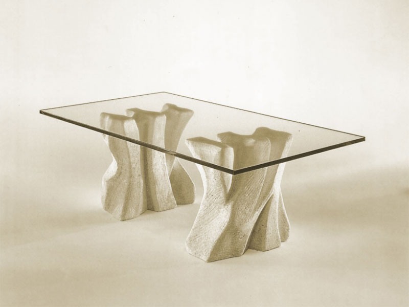 Sculpté à la main table de pierre pour la maison ou au bureau avec haut reposant sur deux bases. 120 cm X 70 X 42 h.