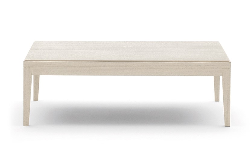 Table bas rectangulaire avec structure en hêtre, placage de hêtre dessus dans