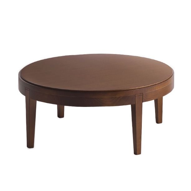 Table basse avec plateau rond en bois de hêtre plaqué. Structure en bois de hêtre massif.