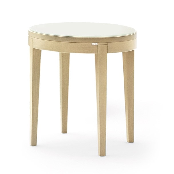 Table basse ronde avec structure en hêtre, en verre trempé laqué haut, pour les environnements dans un style moderne