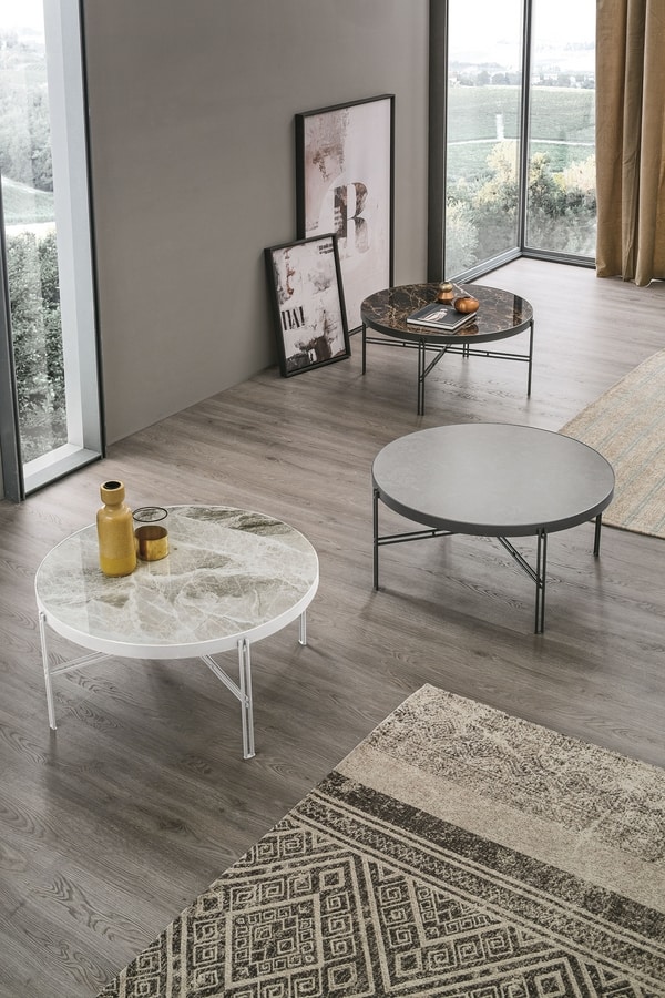 Table basse avec structure en métal peint et plateau en grès cérame.