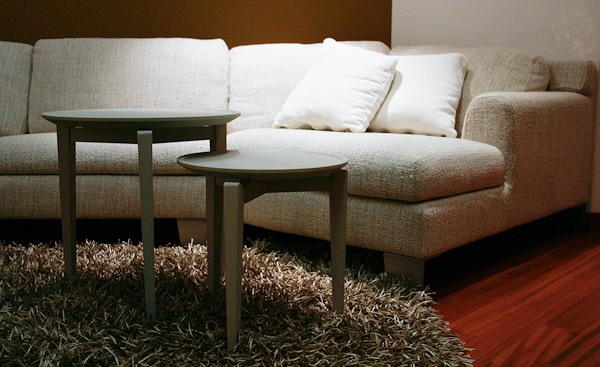Deux tables basses versatile et facilement démontable, adapté à votre séjour. Structure en bois de frêne, diam. 50 h.50 et diam. 40 h.40.
