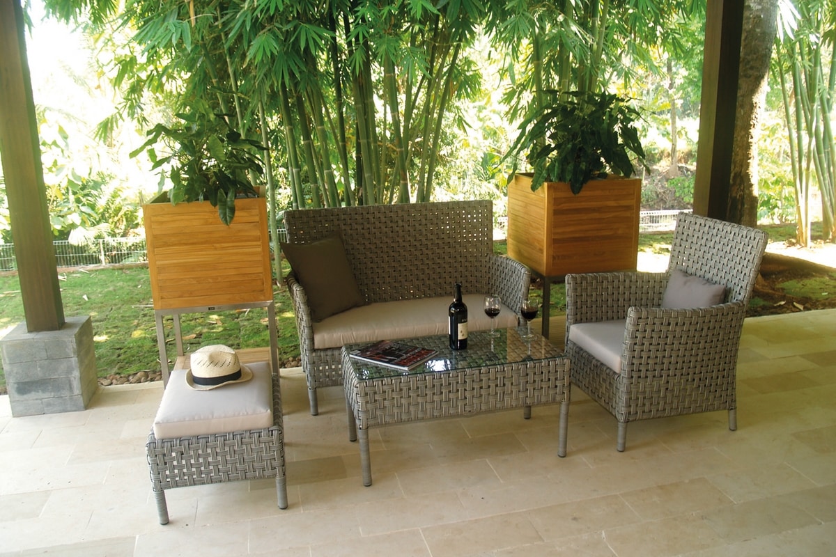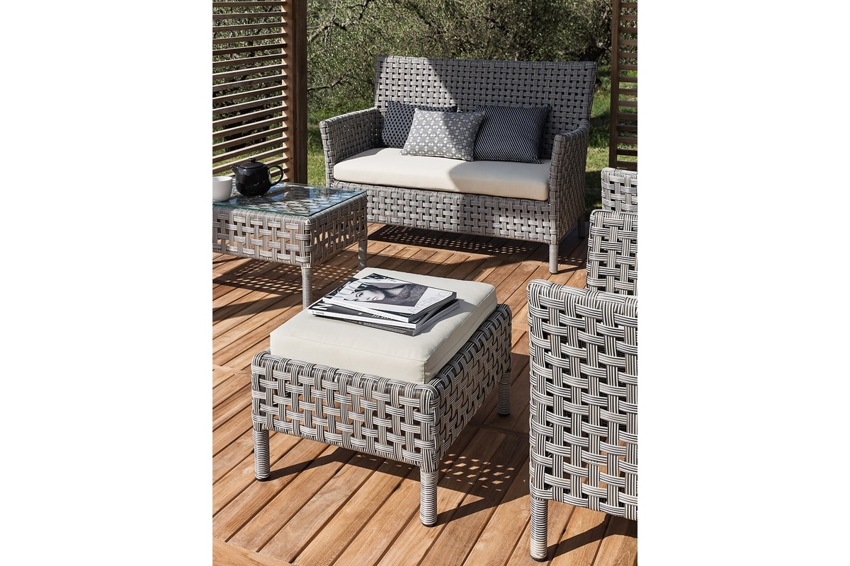 Transformez votre maison ou votre terrasse avec le raffinement de la collection de tables d'appoint Argali. La construction du cadre intérieur est en aluminium. L'osier tissé est en double couleur: blanc lavé et fibre centrale Kubu Grey. Plateau en verre transparent en option.