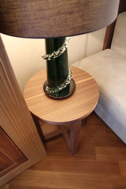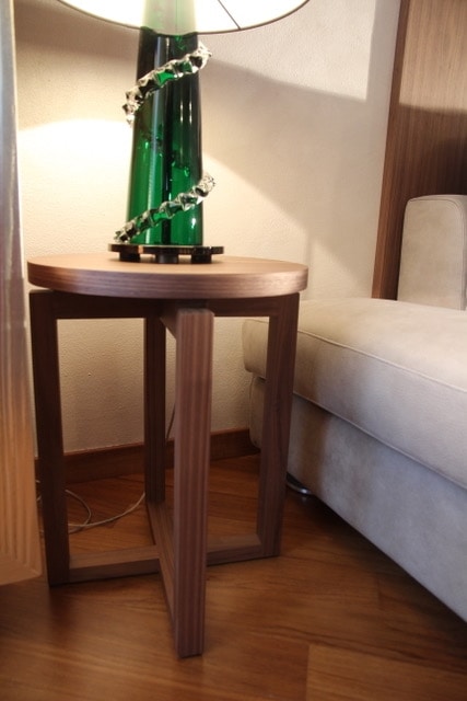 Table d'appoint ronde en noyer canaletto avec plateau en bois ou en marbre. Disponible dans certaines dimensions et également personnalisé.