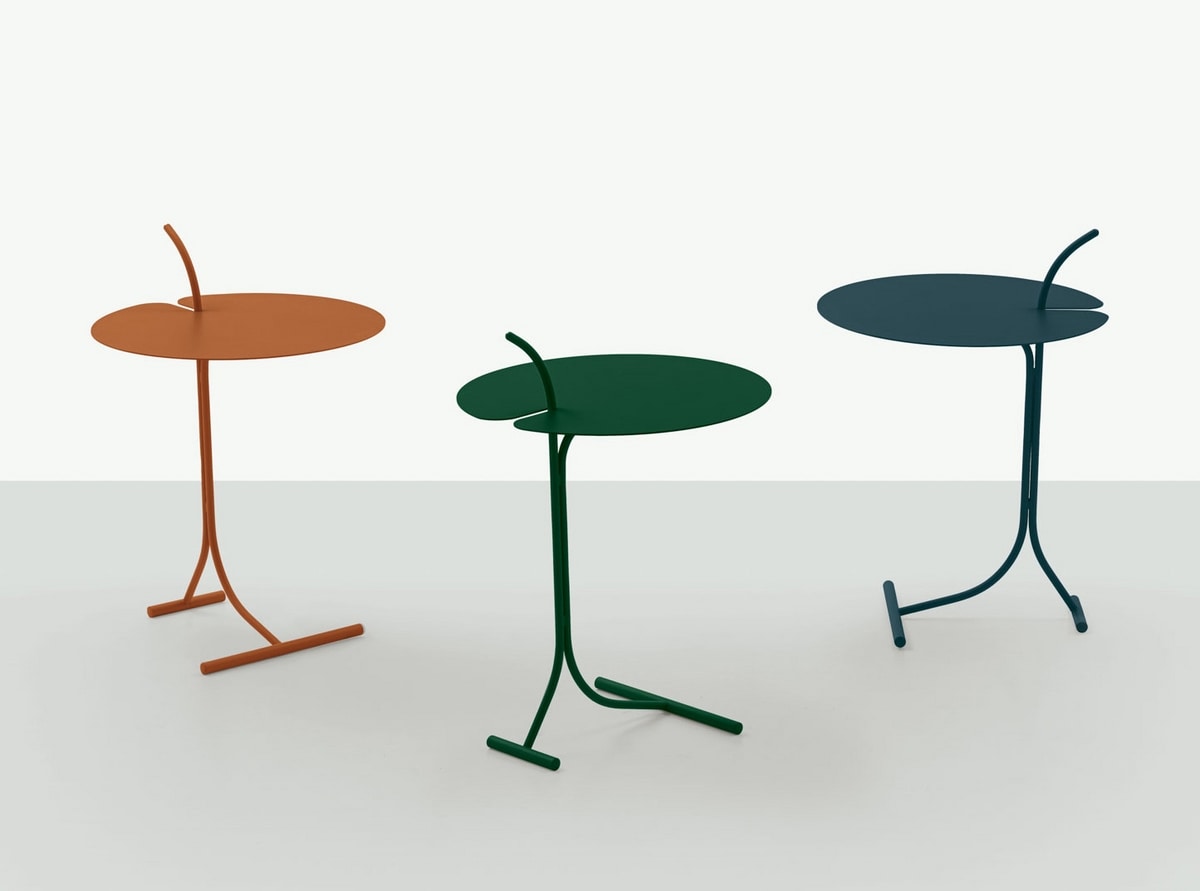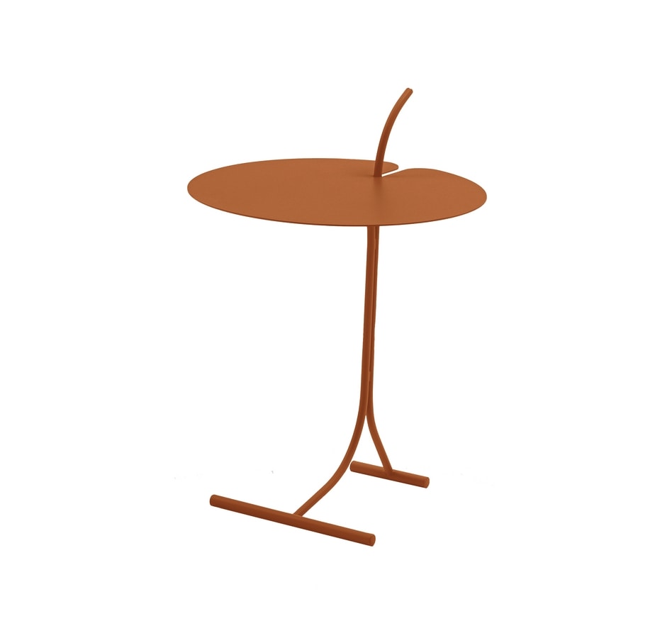 Table d’appoint entièrement réalisée en métal laqué, conçue pour s’adapter au bord d’un accoudoir de canapé. Équipée d’une poignée pratique pour faciliter le déplacement. Disponible dans les couleurs Terracotta, Sapin et Bleu de Prusse.