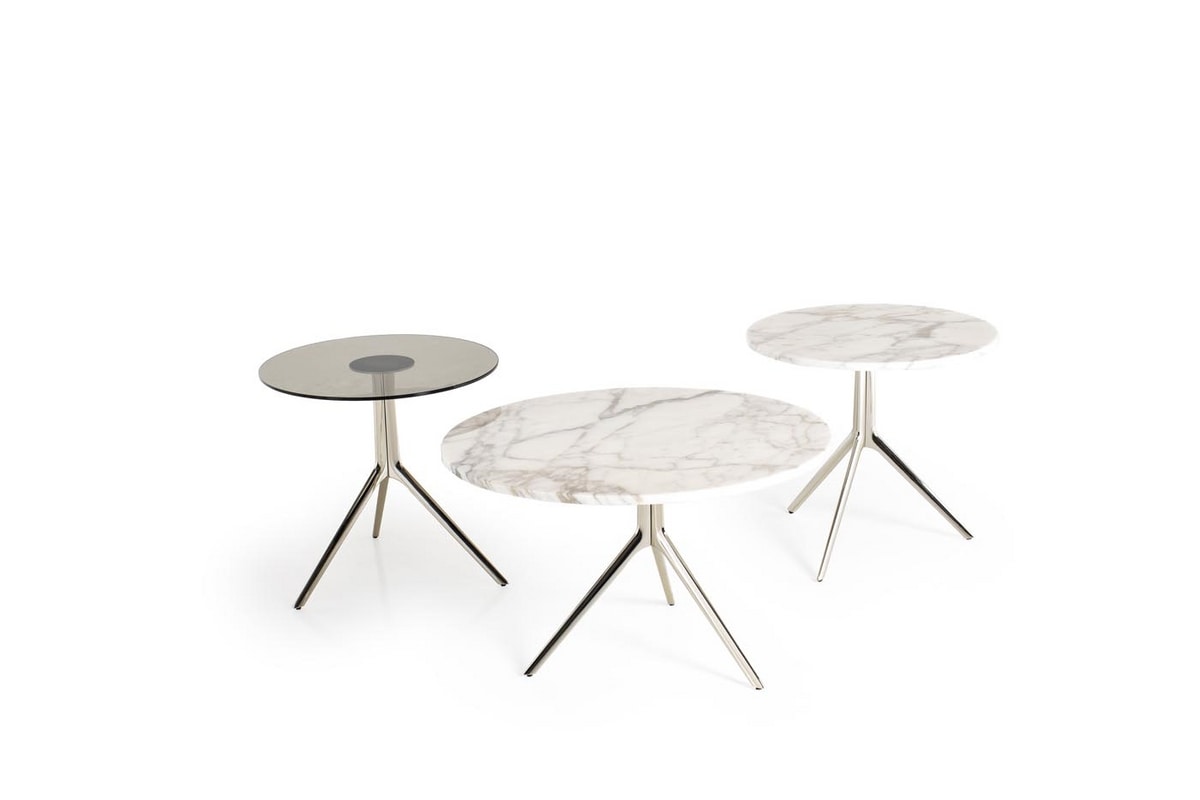 Triangle se prête à différentes créations, grâce à la possibilité d'utiliser des dessus en marbre, en bois ou en cristal de formes différentes et d'affiner la base en métal choisie parmi nos finitions préférées. Design unique et sophistiqué pour une production intemporelle. La collection Triangle permet également l’utilisation de son design intemporel, même pour des compléments appropriés pour le dos du canapé ou pour des consoles décoratives pour le centre de la pièce ou pour les murs, qui peuvent être personnalisés dans le choix des finitions et des plateaux.