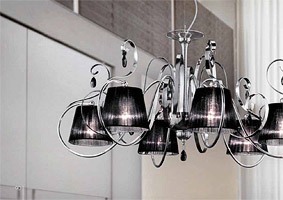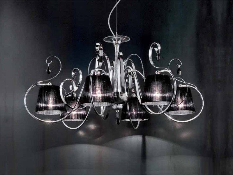 Lustre avec la main en métal chromée de cadre, d'organza et des conférenciers attente SW.