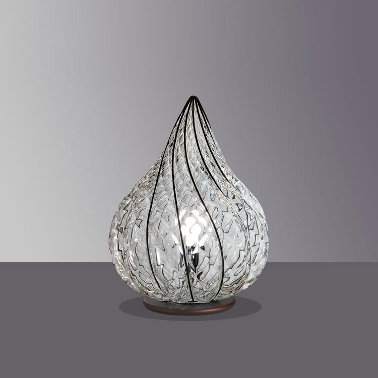 Lampe en verre soufflé fabriquée à la main, créée avec les techniques des anciens maîtres du verre de Murano.