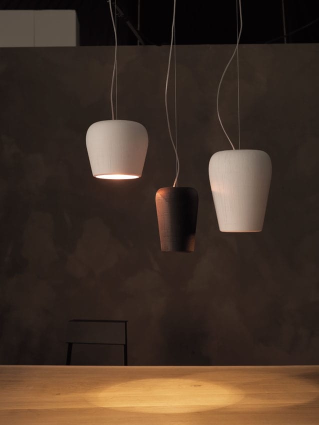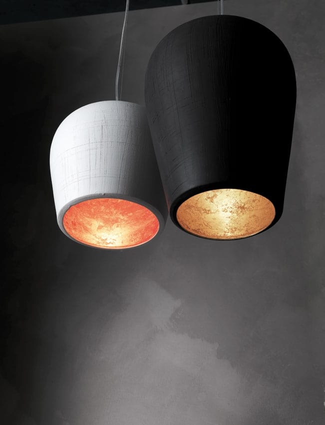 Lampe à suspension en céramique avec grattage manuel en blanc, noir, taupe, coco ou sable. Fini blanc, feuille d'or ou feuille de cuivre.