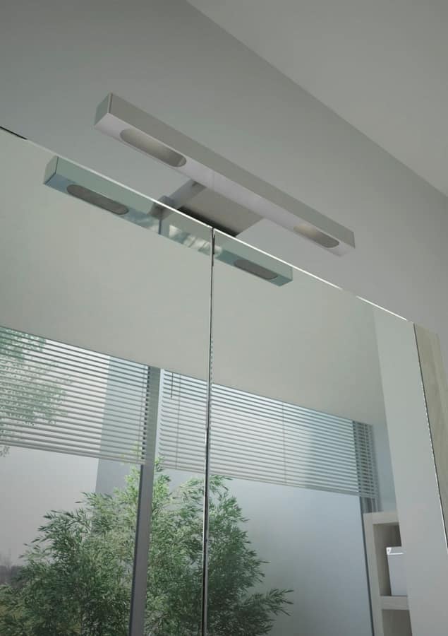 Structure Olmo Panna, bases sur roulettes laquées Biscotto mat, armoires de toilette finition miroir, étagères Olmo Panna, structure haute Olmo Panna, colonnes laquées biscotto mat, lavabo Mineralmarbre blanc brillant.