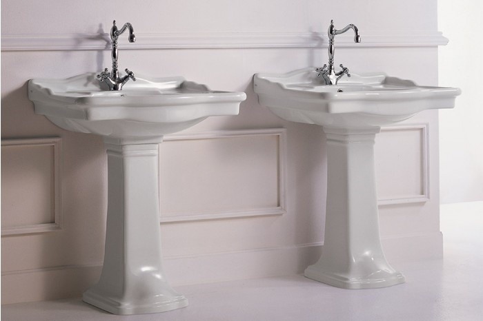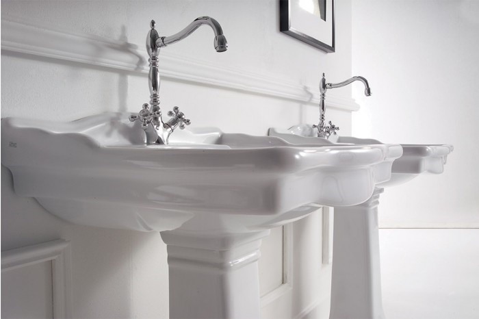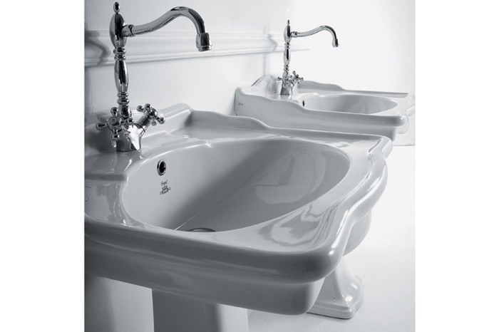 Au fond de tout ce qu'il ya une règle, une mesure, un projet de guide que de temps à des changements de temps. Royal est un programme de lavabos et de la santé exclusive et importante, disponible dans une gamme complète de solutions et de tailles. Un système qui récupère le passé, le renouvellement de la perspective de confort moderne. Le changement signifie l'innovation, même dans le rétro environnement. Cela signifie aussi inventer un style, en optant pour des pièces classiques, disponible en deux couleurs, noir et blanc, librement combinables les uns avec les autres. Gold et Platinum à exaltent avec des détails de classe précieux, comme dans le cas des jambes conçus pour toute la gamme de la console royale.