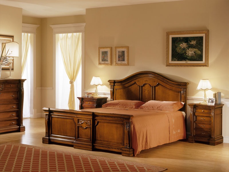 Classic lit double pour la collecte de chambre "REGINA NOCE", avec des sculptures faites à la main et exclusif marqueterie en bois.