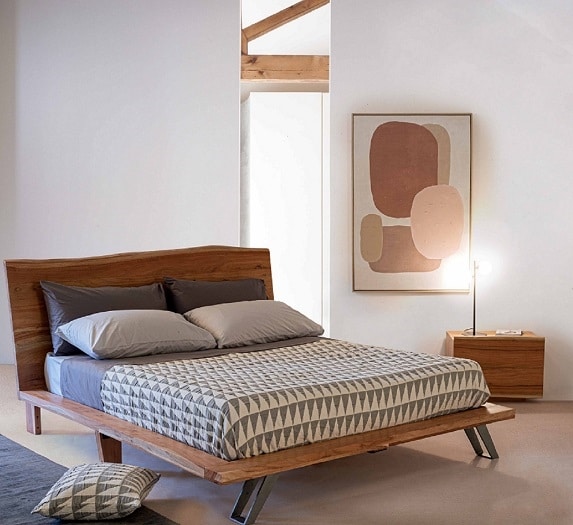 Lit en bois d'acacia solide, avec 2 pieds en bois en finition naturelle, plus 2 fronts en acier foncé. La base en bois est une latte en bois solide Acacia. La tête de lit irrégulière est une caractéristique de ce lit joué d'une manière artisanale. De plus, chaque lit doit être considéré comme une pièce unique car les veines vivantes sont différentes pour chaque article. Le lit Aron fait partie de la ligne Aron qui utilise certains produits tels que la table de chevet, la commode et la coffre des tiroirs ainsi que d'autres meubles de salon.