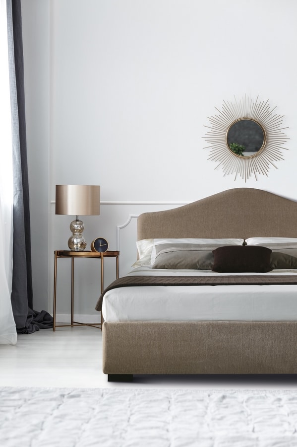 Lit au design romantique, Samoa est disponible avec sommier à lattes en version fixe, avec coffre et avec coffre "Komodo", un système pratique qui soulève sommier et matelas pour refaire le lit sans effort. Samoa est complètement démontable pour faciliter le transport. Le revêtement est totalement déhoussable et lavable selon le tissu choisi.