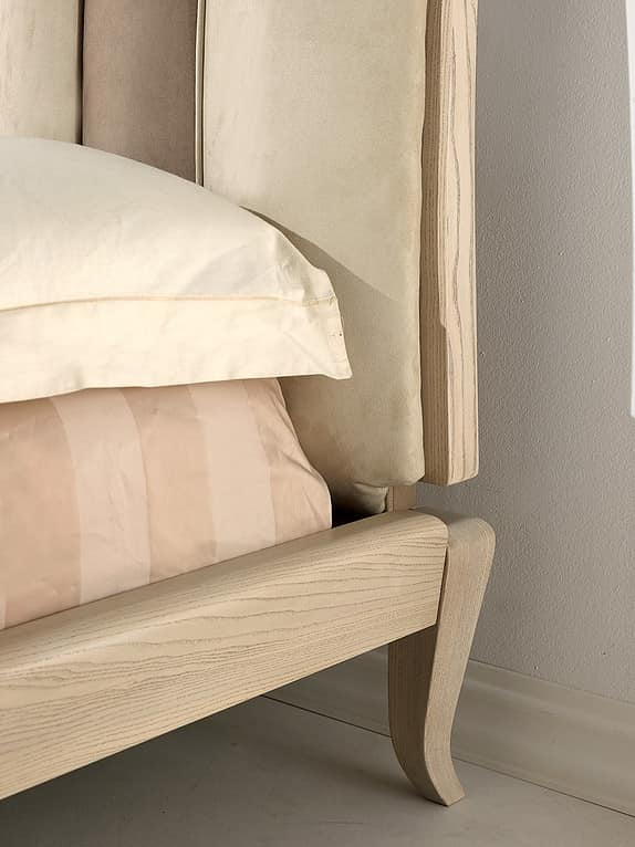 Lit avec dossier rembourré en éco-nubuck avec décoration.