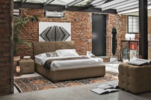 Lit rembourré, avec détails en noyer canaletto