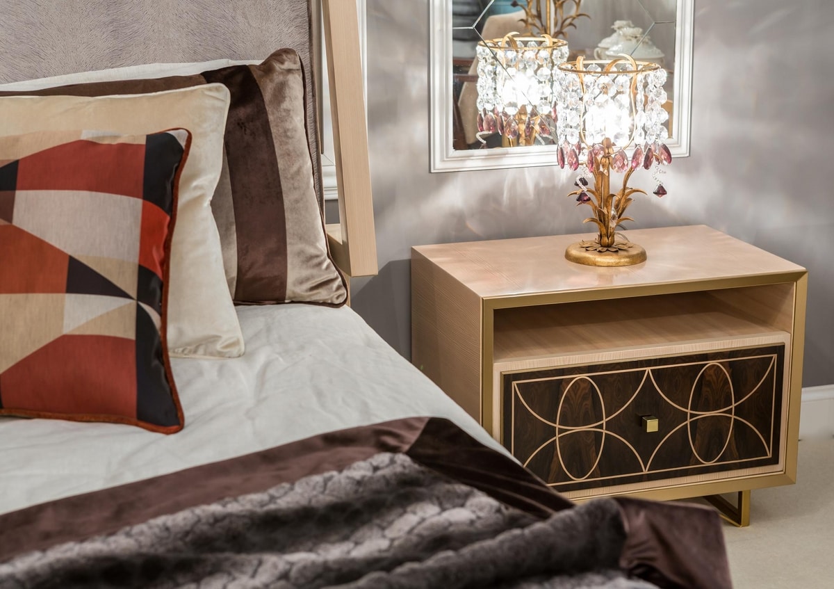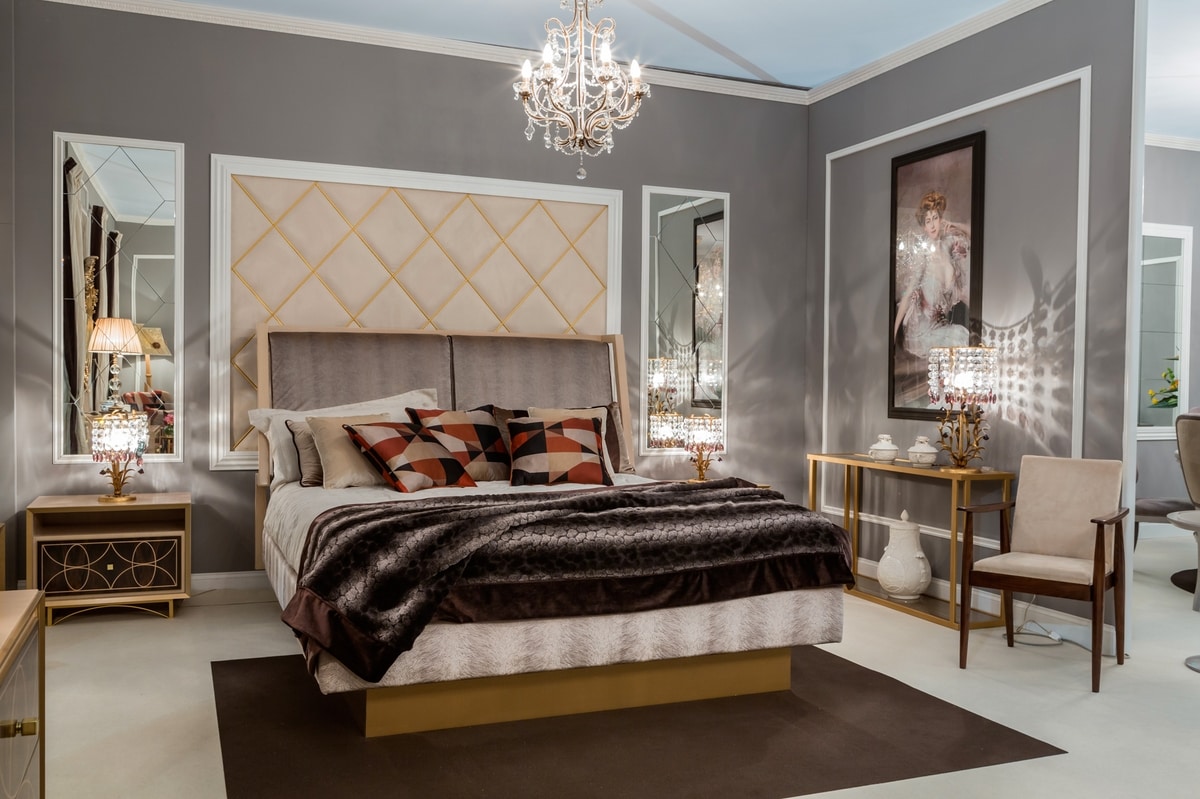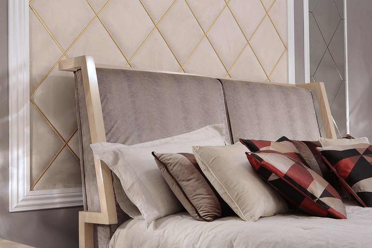Lit élégant avec un rembourrage lisse. Structure en bois.