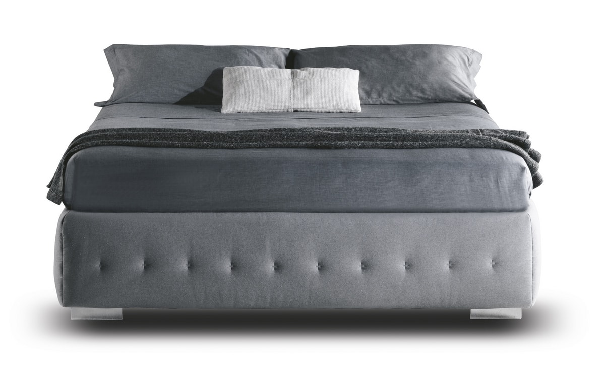 Le sommier Raja se distingue par l’aspect esthétique du rembourrage de sa base. Il est disponible avec sommier à lattes en version fixe, avec coffre et avec coffre "Komodo", un système pratique qui soulève sommier et matelas pour refaire le lit sans effort. Raja est complètement démontable pour faciliter le transport. Le revêtement est totalement déhoussable et lavable selon le tissu choisi.