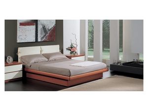 Lit moderne, avec tête de lit effet zebrano