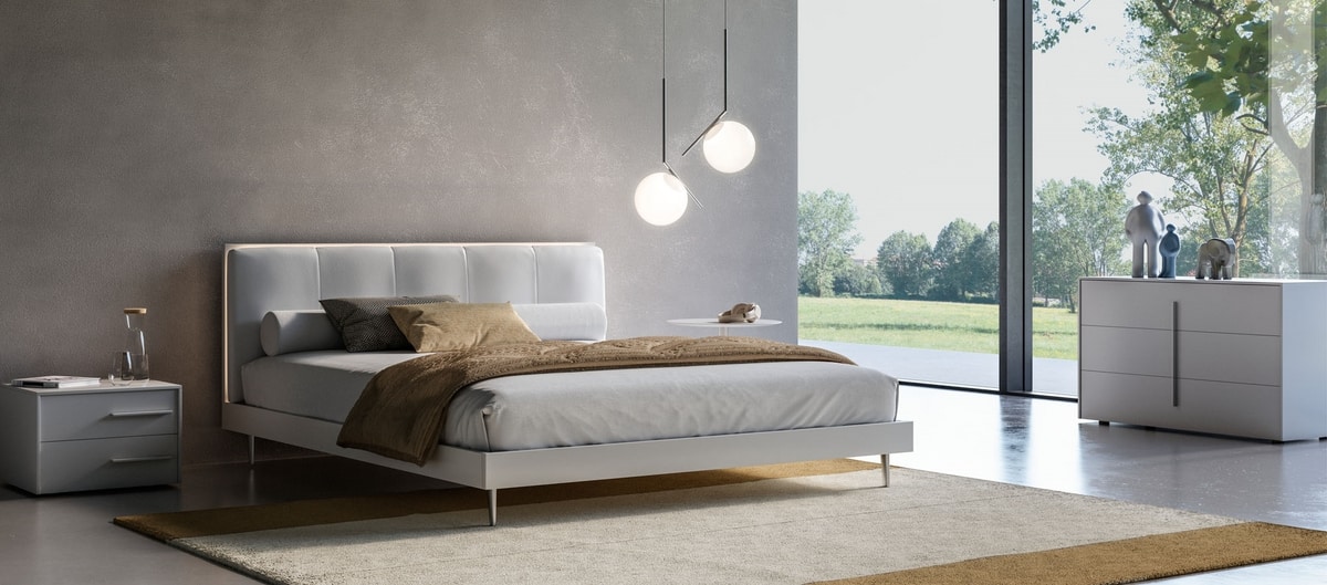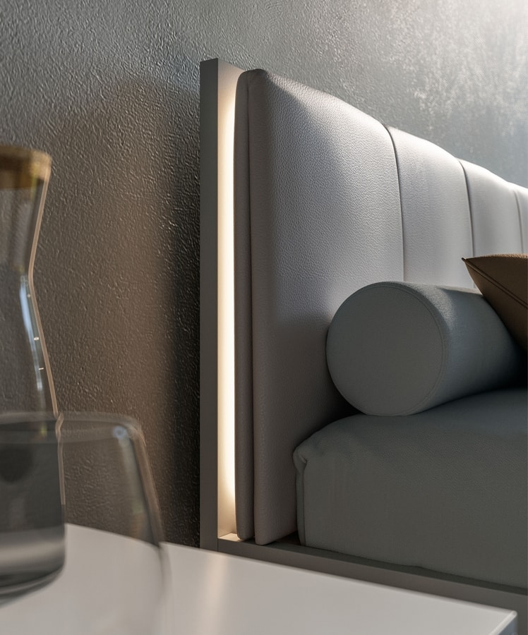 Lit double. Structure Materic White. Tête rembourrée en éco-cuir 536/1. Éclairage LED.