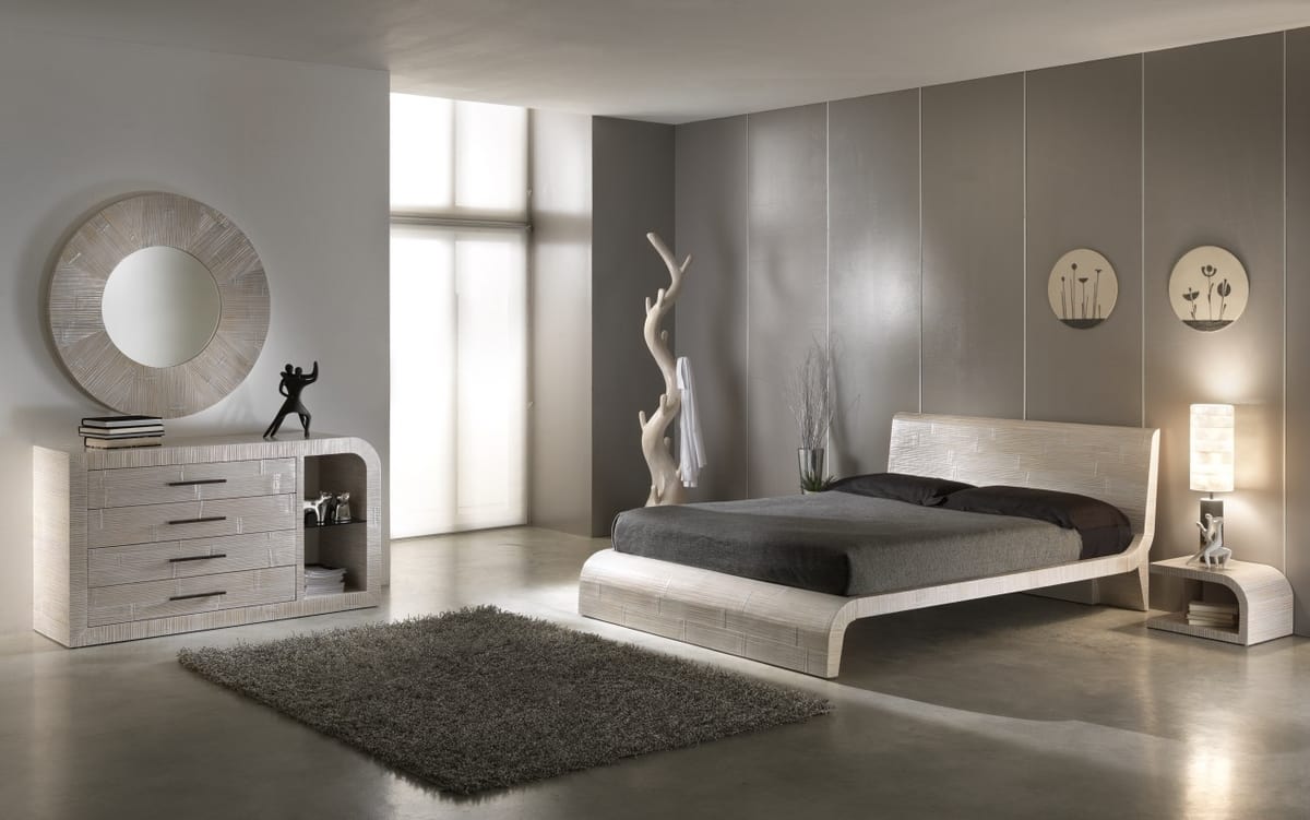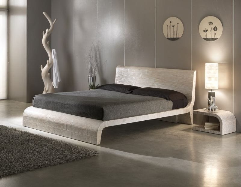 Lit de style ethnique avec tête de lit en bois
