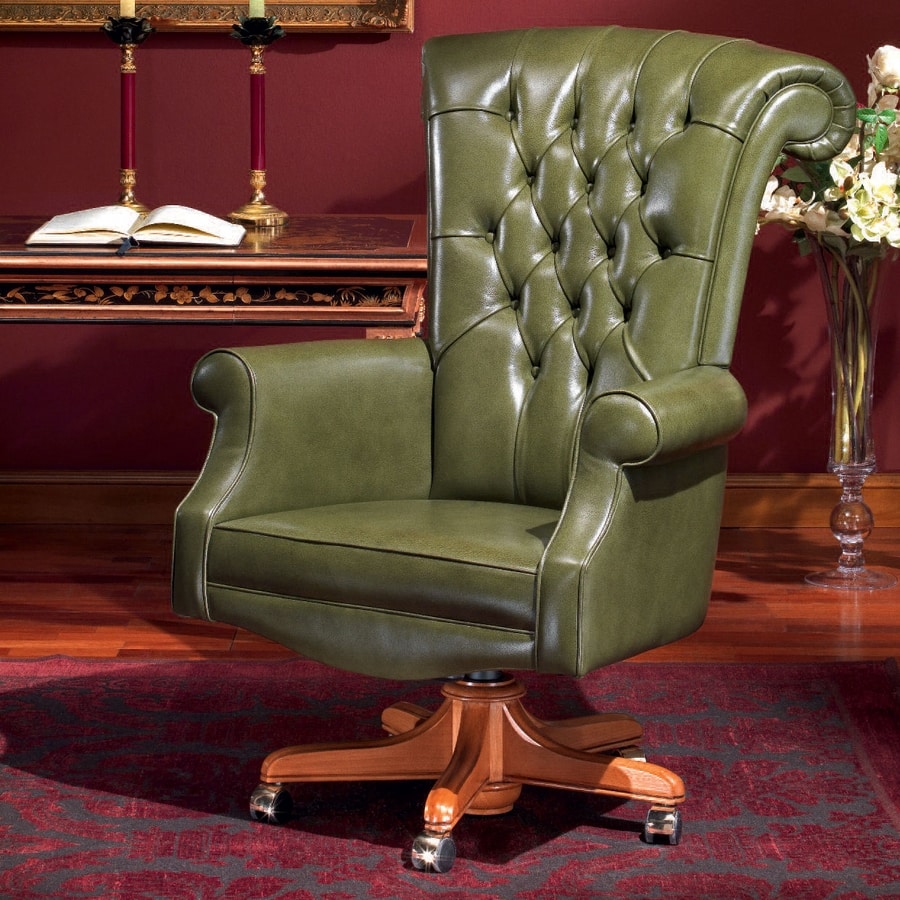 Demander prix Produits similairesCette chaise de bureau est idéale pour ceux qui recherchent un maximum de confort; la sellerie capitonnée standard rehausse particulièrement le luxe de ce modèle où l'on utilise des cuirs naturels de première qualité, teint à l'aniline, pleine fleur avec des pigments à effet bicolore, aspect semi-brillant.