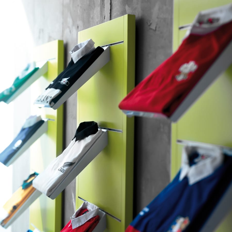 Présentoirs muraux pour les magasins de sport disponibles en deux versions: