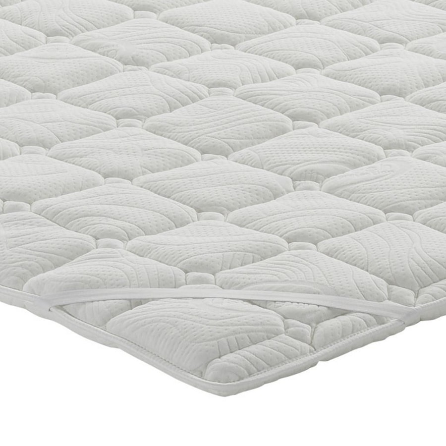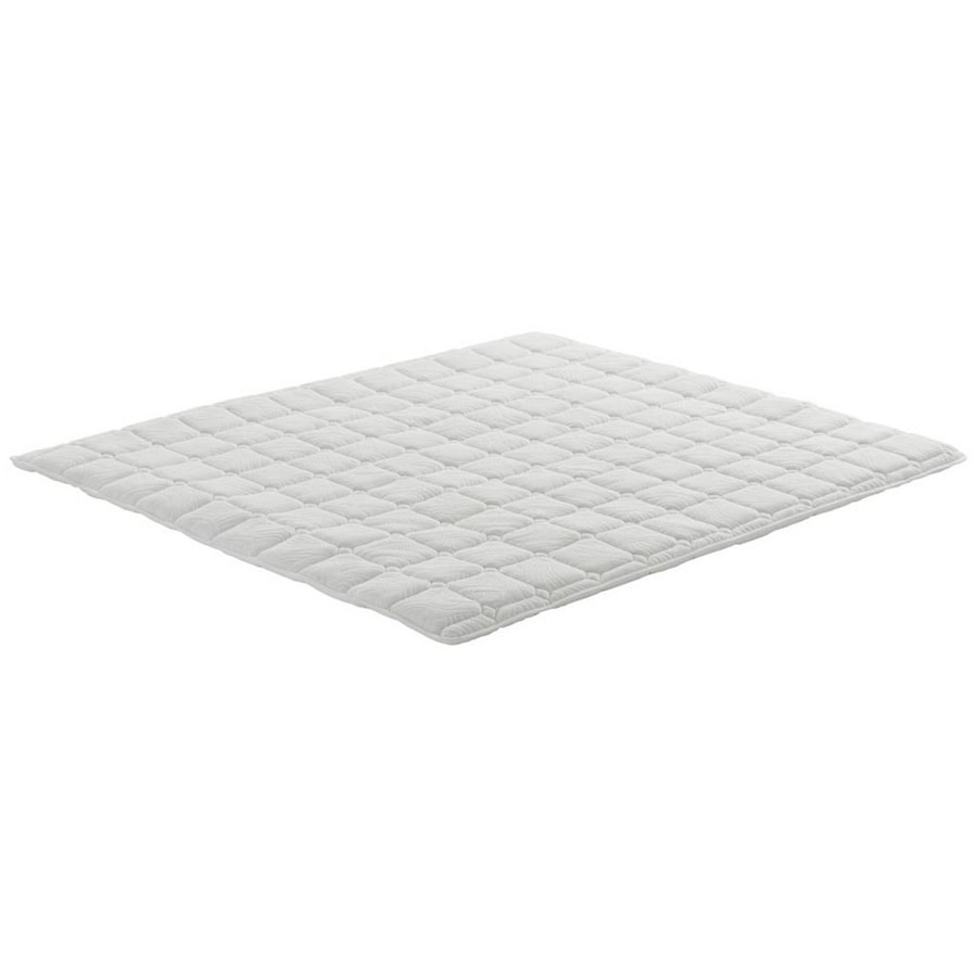 Composé d'un tissu rembourré de fibre hypoallergénique, il a une épaisseur de 50 mm et permet de corriger la rigidité du matelas. Il est livré avec un élastique sur les côtés pour pouvoir le fixer au matelas.