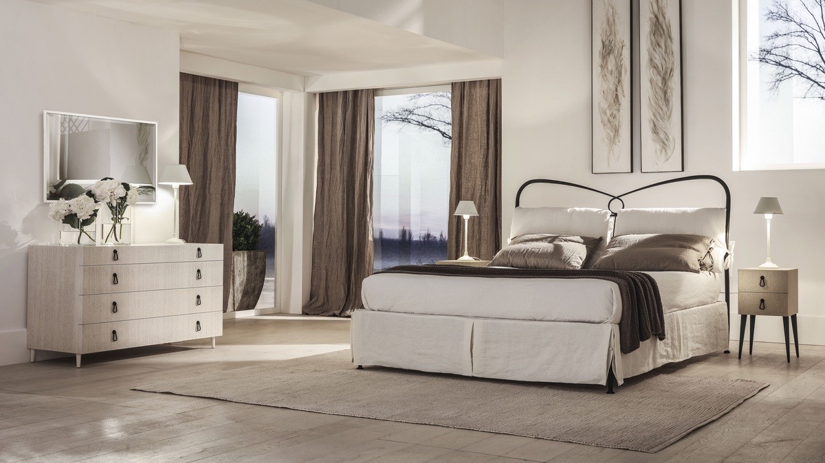 Commode cadre de tiroirs en chêne plaqué multicouche-bois à pores ouverts texture. Froid traitées pieds de fer en forme de cône, plaques découpées au laser, laiton soudage latté à la main. laiton Pantographe-cut poignées. finition de bain Electroplating, épaisseur minimale de 25 um. tiroirs avec système soft-close retrofit extension complète.