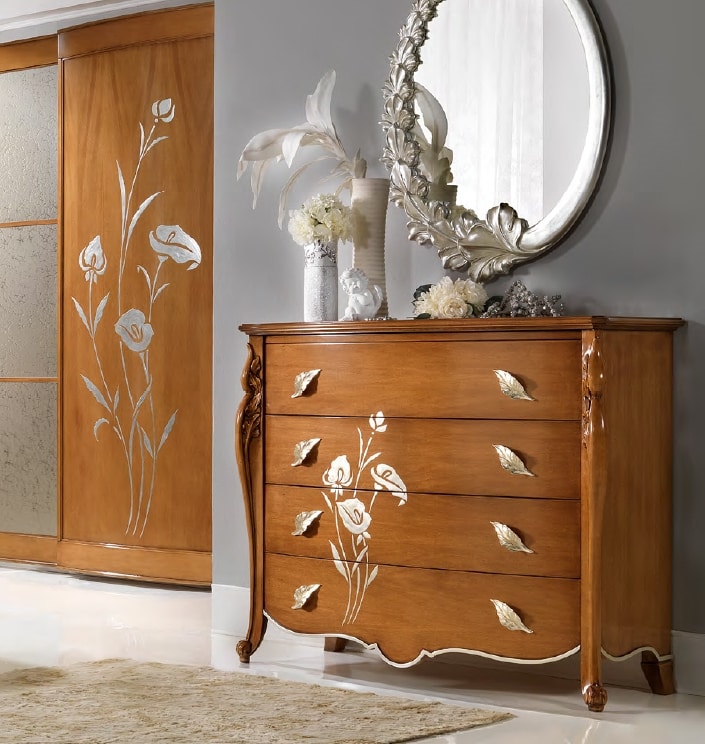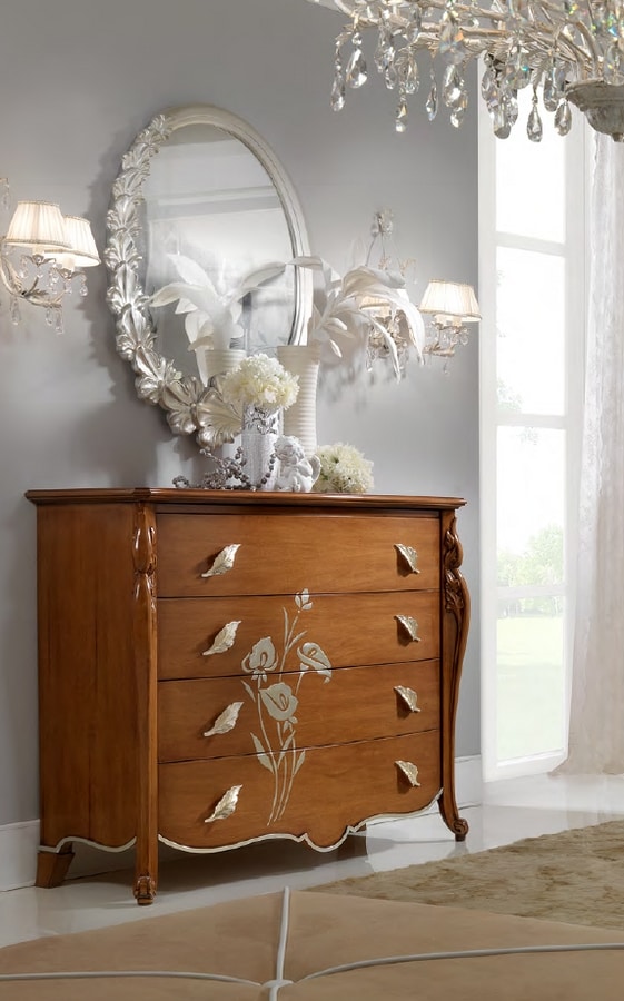 Demander prix Produits similairesCOSE DE DES TIROCHES CLASSIQUE, avec une structure en bois enrichie de sculptures. Poignées en argent. Équipé de 4 tiroirs.