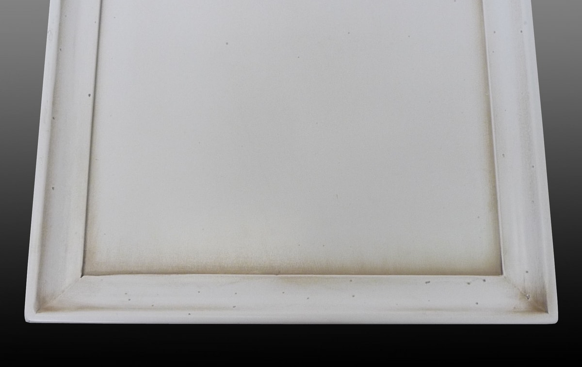 Étagère en bois de cerisier, à trois étagères étroites incrustées de filet d'ébène, côtés enrichis de croix avec un hexagone sculpté au centre. Dessus encadré et pieds légèrement incurvés.
