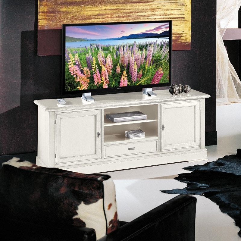 Meuble TV classique, avec étagères en bois