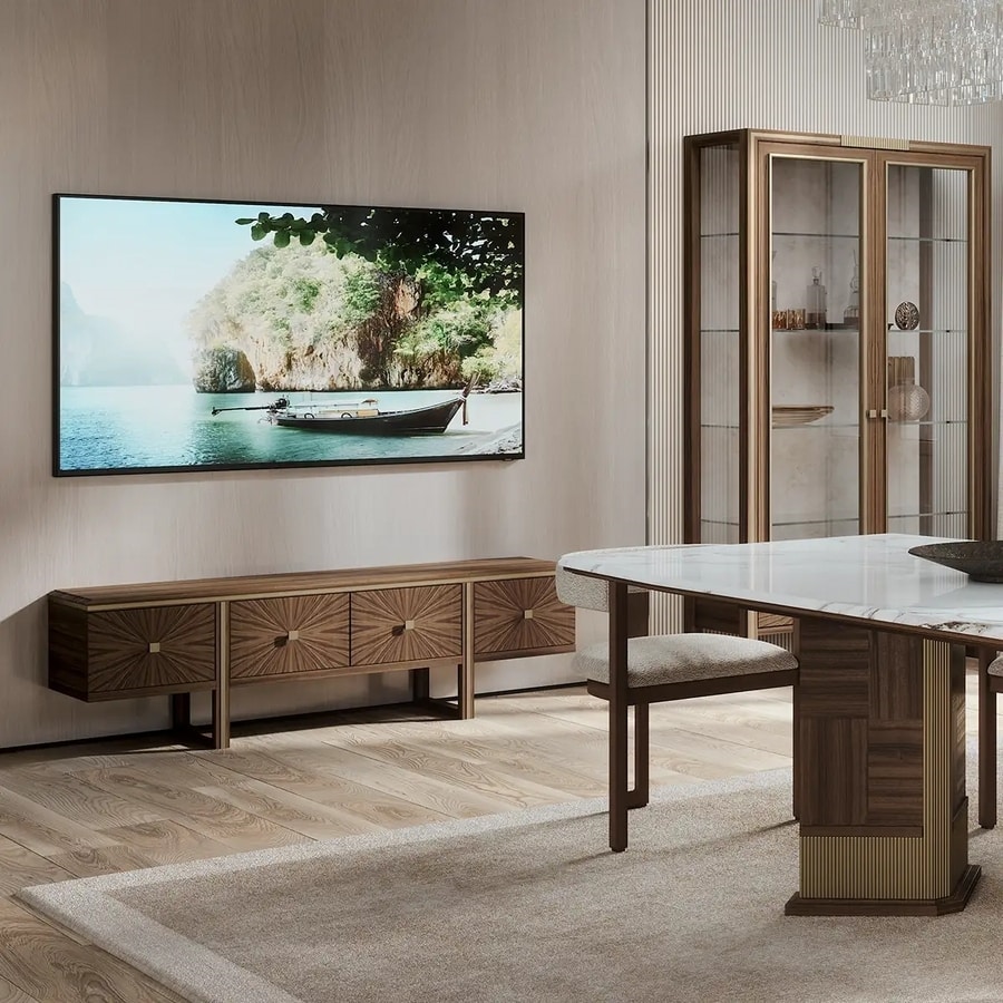 Choisissez notre meuble TV Canaletto en noyer de la collection Brera pour allier esthétique sophistiquée et adaptabilité personnalisable.