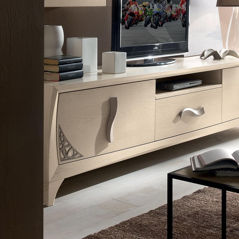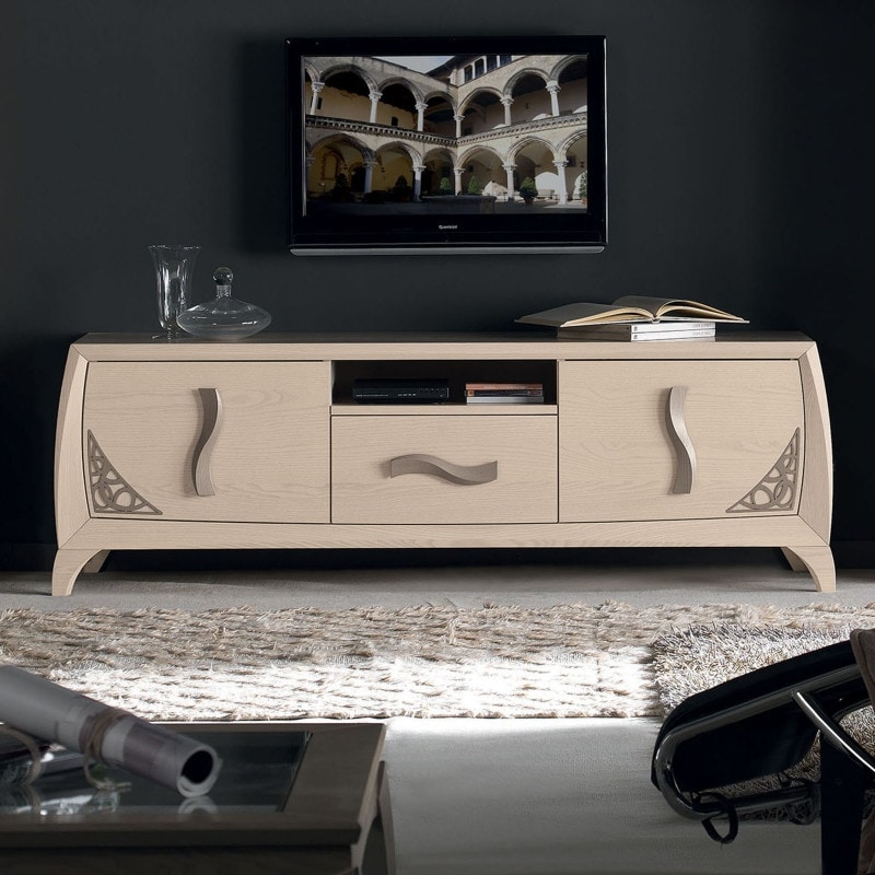 Base meuble TV avec 3 tiroirs chantournés et 1 compartiment