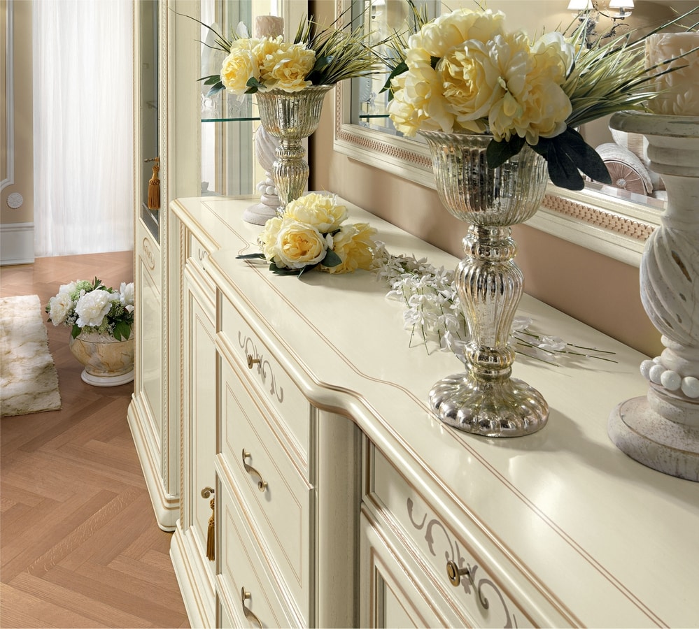 Meuble de salon avec meuble TV en bois finition ivoire.