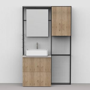 Meubles de salle de bains avec le système modulaire, des formes de base, différentes finitions, portes à fermeture magnétique