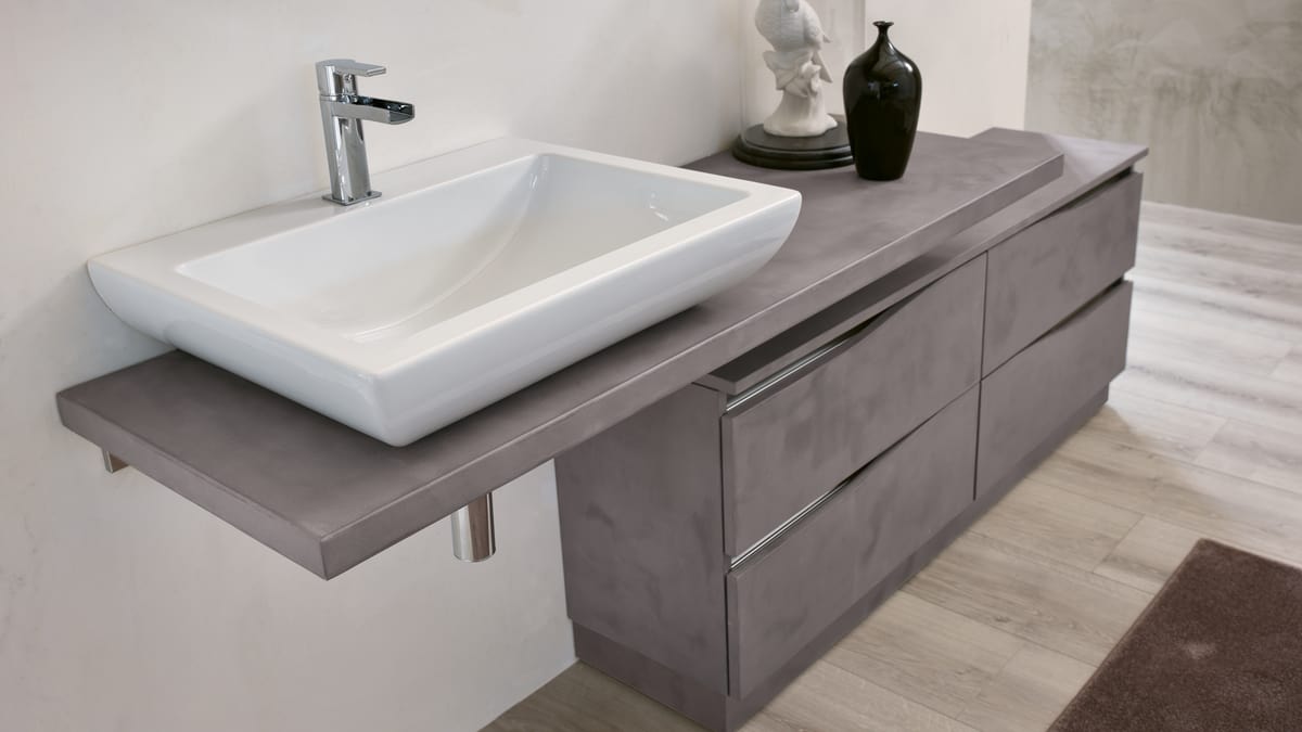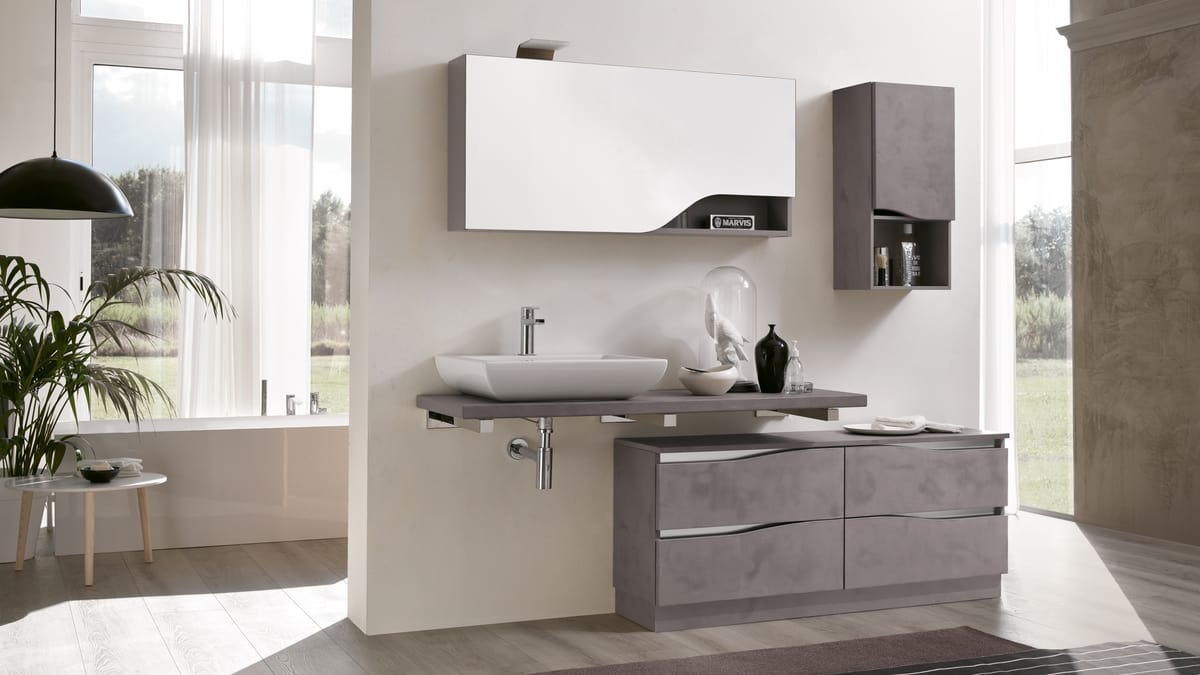 Produits similairesMeuble complet modulaire pour salle de bain avec vasque à poser.
