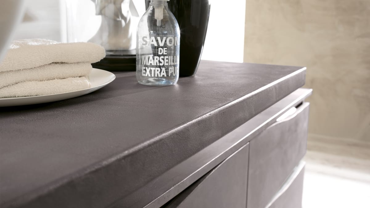 Meuble gris mat platine avec 4 tiroirs.