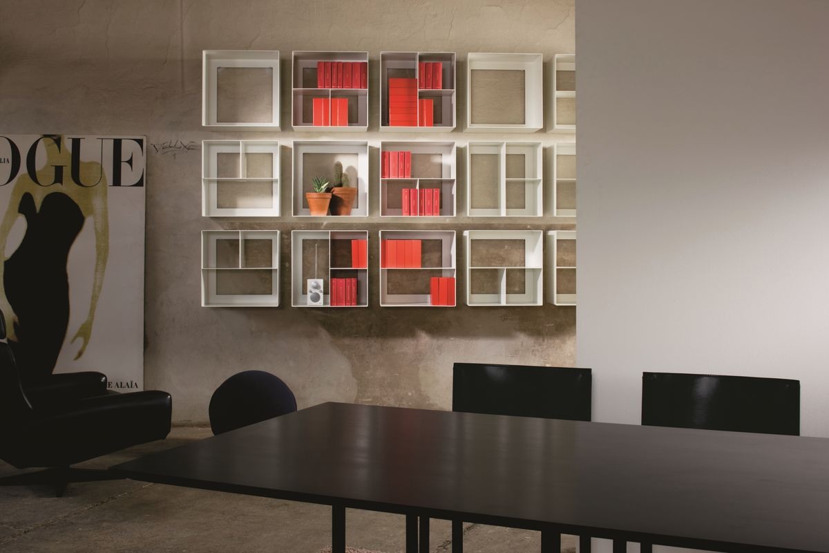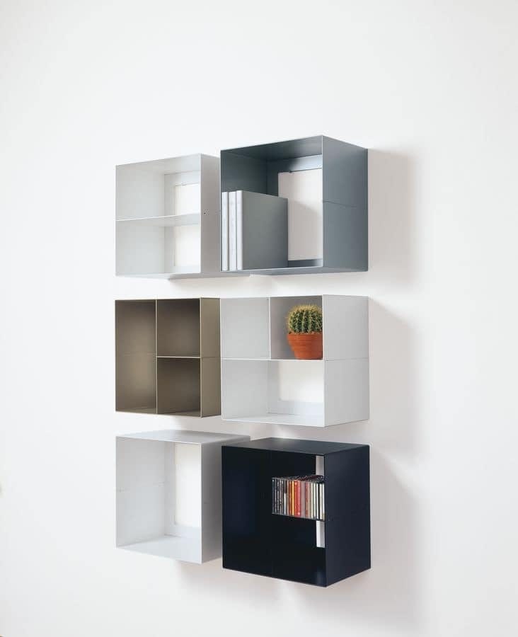 Ouvrez les récipients qui peuvent être librement placés sur le mur. Disponible en quatre variantes. Structure en acier laminé dans la finition de cire naturelle speical ou laqué.