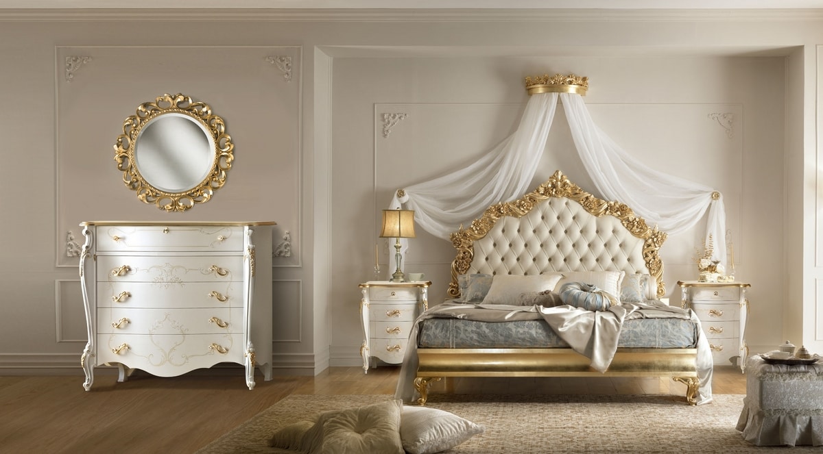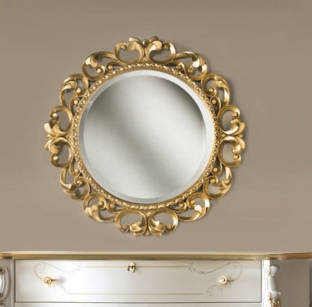 Miroir rond sculpté à la feuille d'or.